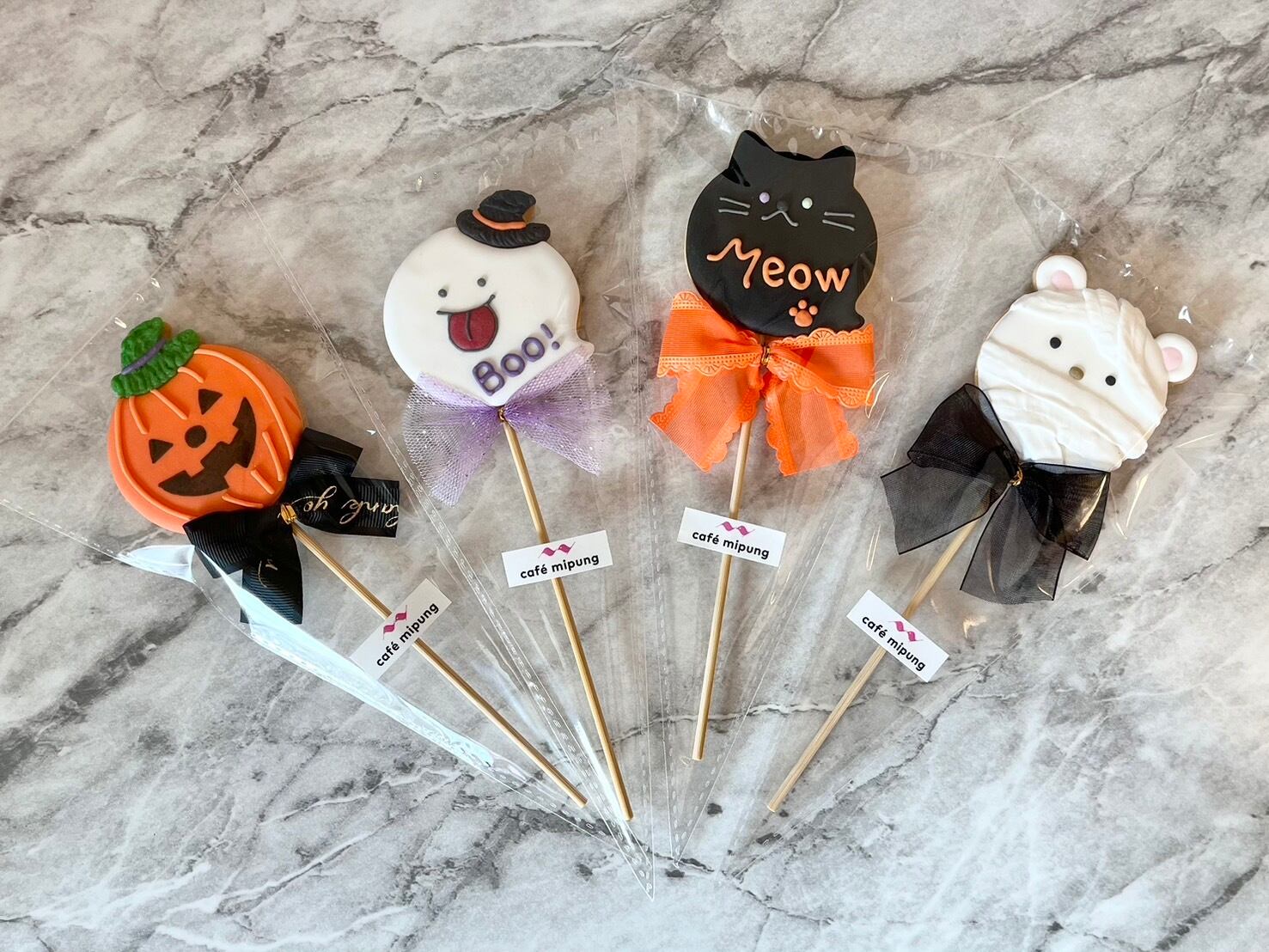 かぼちゃ、おばけ、黒猫、クマの4種です!